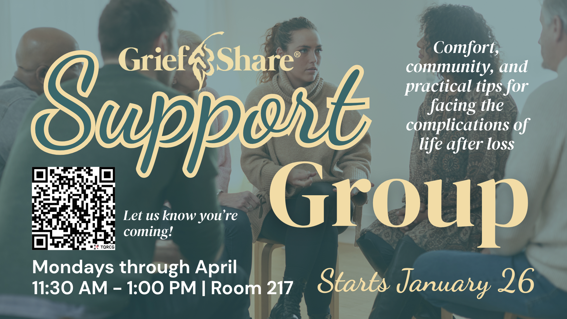 You don’t have to walk through grief alone. Join our Grief Share Support Group beginning Monday, January 26, where you will find understanding, comfort, and practical help for navigating life after loss. Whether your loss is recent or years ago, you will discover hope and healing alongside others who understand what you’re going through. This group will run through April and meet in Room 217 at 11:00 AM. Participants are welcome to bring their own lunch and online registration is encouraged.