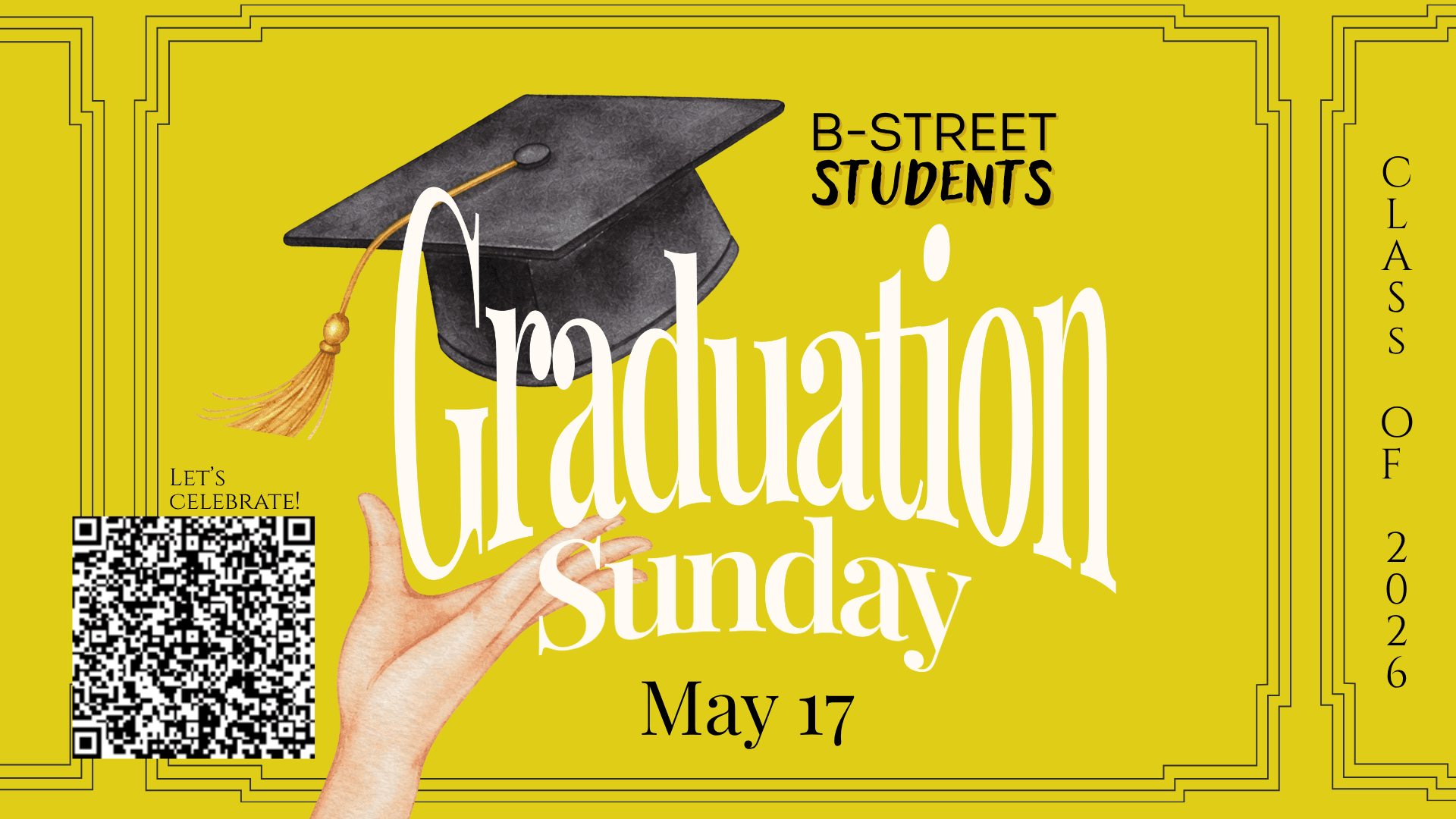 Congratulations 2026 Graduates! We would like to celebrate you and your accomplishments at our Graduation Sunday service on May 17. Graduates will be recognized and prayed over during our 11:00 AM Traditional Worship service. We will take a group picture on the front steps of the church after the service.