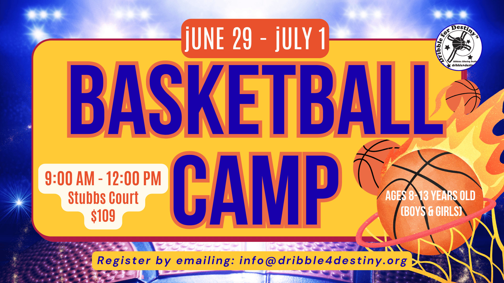 Register by emailing info@dribble4destiny.org